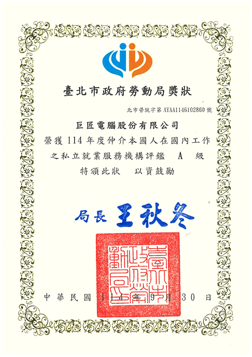 就業服務評鑑臺北市勞動局就業服務機構評鑑 A級