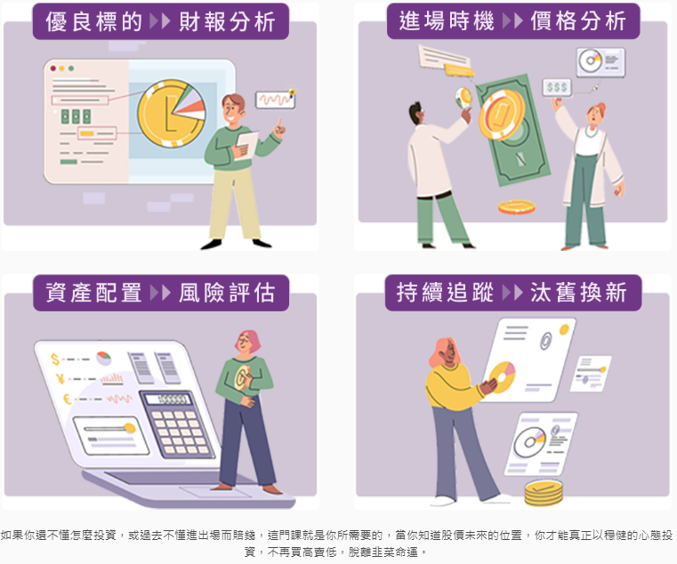 退休前的財務規劃課 開源節流線上影音課程 掌握財務關鍵數字力 財商心理學入門 看懂「財報存股」 看懂「財報分析」