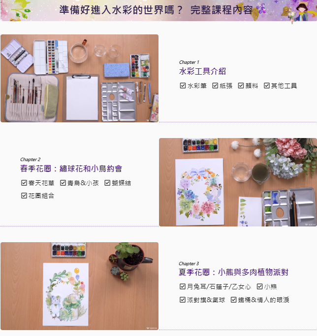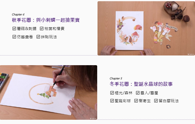 與小動物相遇的花圈:用水彩畫出四季的故事