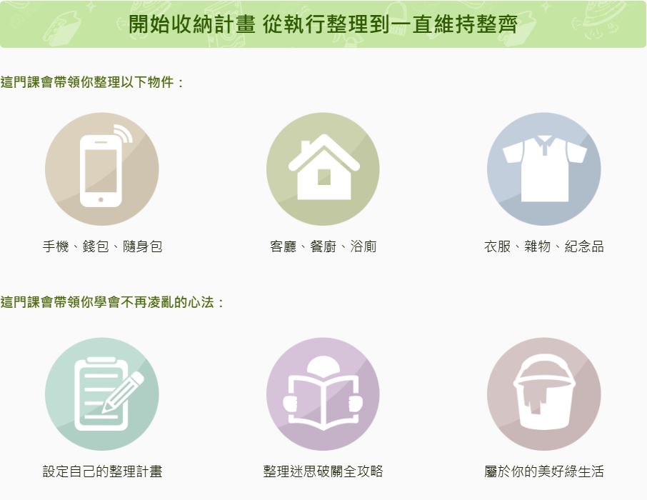 美甲凝膠基礎班 台灣手語入門班 舌尖上的攝影師 軟裝提案課 小資收納整理術 葡萄酒品飲搭餐