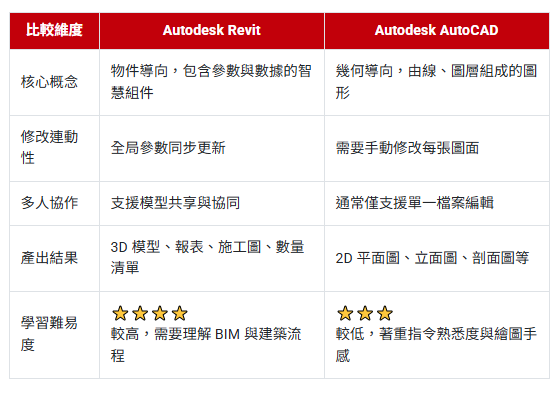 學 Revit 要先會 AutoCAD 嗎?一表看懂二者差異!