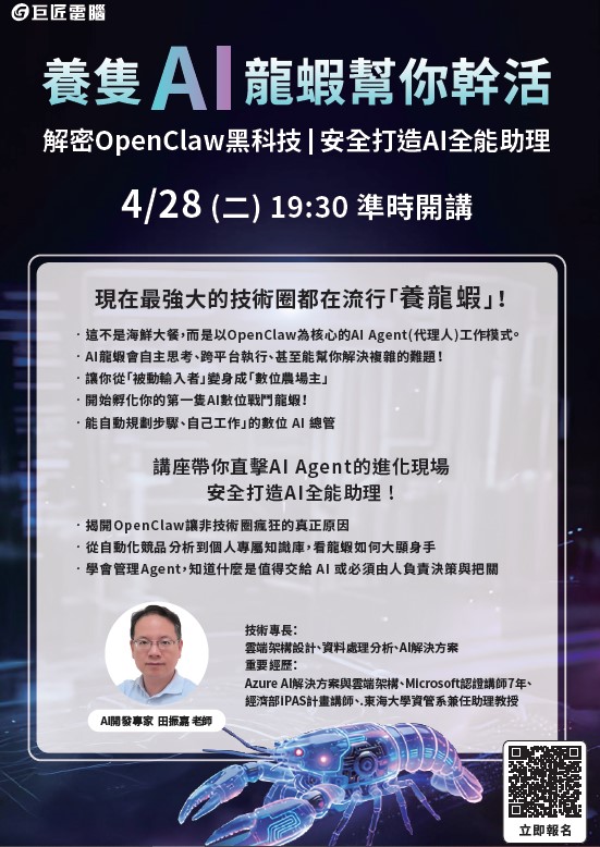 4月Live講堂 _ 養隻AI龍蝦幫你幹活 ! 解密OpenClaw黑科技